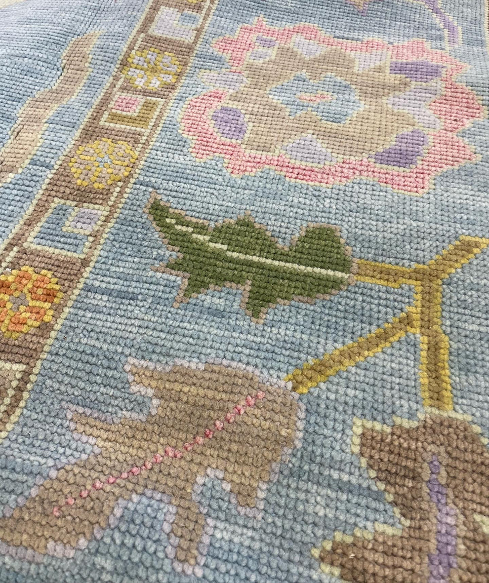 It is a very beautiful and latest Handmade minimalist Oushak rug. This Rug is unique colors and latest design. The Oushak style is a traditional Turkish rug that has been adapted by many studios and designers over the centuries. The motifs are often seen in antique Oushak rug, but the color palette is a bit more modern in style. It fits in nicely in any room from the living room to the bedroom, kitchen and dining room.